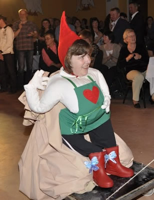 Kombiniert man die Begriffe „Frucht“ & „Zwerg“ erhält man nicht nur eine klebrige Süßspeise- NEIN! -im diesjährigen Programm des CCM entsteht daraus ein wahres Meisterwerk. Nicht klassisch gesprochen, doch mit Leidenschaft und jeder Menge Sympathie übernahmen D. und J. Schilling als der „Burgsteinbuh und sei Fraa dazu“ als 2te in der Bütt die Regie. Da bildete ein kleiner grüner Apfel die Basis für einen süßen Kuchentraum und findet es dann im Magen des Meisterbäckers herzhaft zum Lachen auch fernab von seinem „Geburtsbaum“. Mit Gummistiefeln bekleidet tanzten Sie gekonnt den „Schwanensee“ und den krönenden Abschluss bildete eine Stepptanznummer a la Michel Flatley! Das erste Mal waren diese Beiden im Programm dabei, unsere Gäste und wir hoffen sie bleiben uns auch in den nächsten Jahren als Akteure treu!