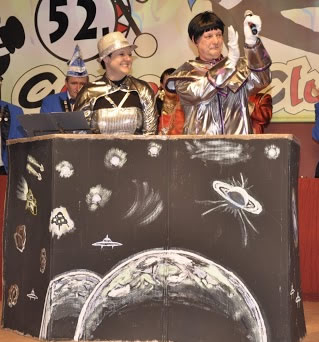 Auch die Bütt, ist logisch klarer Fall, war wiederzufinden im diesjährigen Programm im Molbitzer Carneval. Doch auch da ging es diesmal auf zu neuen Sphären, denn für Commander A.X.E.L (A.Götze) und Commander SUSA.NN (S.Götze), gab es bei ihrem Besuch so manch sonderbares zu entdecken oder im Umgang mit uns Erdenbürgern aufzuklären. Von ..“..seltsam strahlenden Höckern..“, über das zwischenmenschliche Zusammenleben bis zu Natur- und Pflanzenkunde, von jedem Thema war da etwas dabei und zum Abschluss glänzten sie auch noch musikalisch die Zwei!