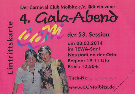 …so kann man wohl auch den 4. Galaabend des CCM beschreiben. Trotz der vergangenen faschinsgreichen 4 „Tollen Tage“ waren alle Aktiven mit voller Begeisterung und guter Laune dabei. Nach dem Einmarsch der Garden und einer stimmungsvollen Schunkelrunde zum „warm werden“, eröffnete unser Funkenmariechen Lotte das Programm mit ihrem fetzigen Marsch zur Musik von Lady Gaga. Ohne Verschnaufpause ging es weiter mit dem Marsch der Funkengarde bei dem keiner mehr still auf den Stühlen sitzen blieb. Mit ihrem Tanz „Arielle“ überzeugten die Orlanixen das Publikum, dass sie ihrem Namen alle Ehre machen können. Axel und Susan strapazierten als Opa mit Enkelin die Lachmuskeln des Publikums. Unsere Kleinsten entführten unsere Gäste dieses Jahr nach „Viva Las Vegas“, wo man auf so manche bekannte Gesichter aus Kindertagen aber auch auf Stars von heute trifft. Dass Schminke und Make up völlig überbewertet werden und auch natürliche Produkte völlig ausreichend sind zeigen Doreen und Mario Schilling in ihrer Bütt. Eine Reise in die 90er Jahre erlebte unser Publikum mit der Showtanzgruppe „Kebs“. Bei der diesjährigen Spaßeinlage ließ es die Leibgarde mit DJ Iggy ordentlich krachen. Auch für etwas Süßes zwischendurch ist während des Programms gesorgt, denn Deja Vu bringen ihren eigenen Candy Shop mit. Reichlich viel los war auch auf der Wiese von Mobbel Maja und Wunder Willi. Sexy und verführerisch zeigte sich die Funkengarde bei ihrem Showtanz zum Thema „Burlesque“. Doch auch ein 4. Galaabend geht einmal zu Ende und so hieß es auch dieses Mal „Wer hat an der Uhr gedreht, ist es wirklich schon so spät?“ Doch heute ist nicht alle Tage, nächsten Samstag Molbitz! Keine Frage!