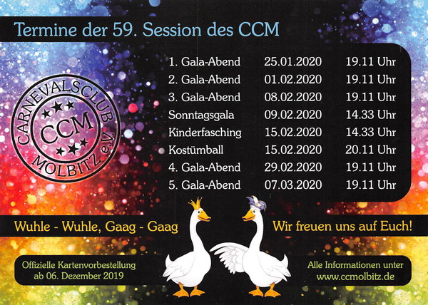 Der Molbitzer Carneval Club begrüßt seine Gäste zu seiner 58. Session!